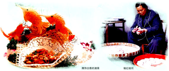 在各乡各里、各家各户的大展示大评比活动中,有效地激发农副业生产、烹饪技艺和民间艺术的发育和发展。那家的猪养得又大又肥,那家的剪纸剪得又雅又细,那家的绣花绣得亦精亦美。这些,都列在比赛之中。比赢了,人们就赞那家的媳妇贤惠。所以,年终的游神赛会,实际上也是潮汕“姿娘”手工技艺和各家各户生产、生活的大比试。精、美、细,成为了潮汕姿娘家事活的最高境界,“粗细样样会”(也就是既会做家务2活,又会做手工活),成为潮汕姿娘贤惠的标准。“潮汕姿娘会做花”、“潮汕姿娘会理家”,早已声名在外。