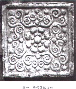 1994年11月3日,正定县政府新建办公楼前西侧在安装供水装置时,于地下约3米处发现用模印方形莲纹灰砖铺墁的地面。方砖带有纹饰的正面向下,背面向上,边长37~38厘米,厚6.7厘米(图一)。当时经河北省文物研究所的业务人员初步鉴定为唐宋时期遗物,后经与唐长安城大明宫太液池遗