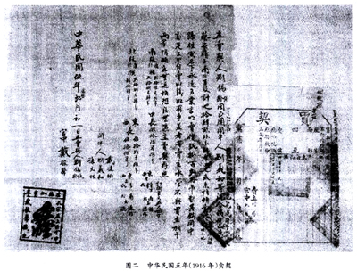 最近,笔者在整理河北沧县王氏家族地契时,发现了两张与众不同的地契,在与这两张地契相连的买契上,落款时间“洪宪”二字上又覆盖了红色的“中华民国”四字。对此笔者进行了考证、研究,认为它见证了中国近代史上一个重大的历史事件——袁世凯称帝及其破灭,是两份十分宝贵的历史资料。