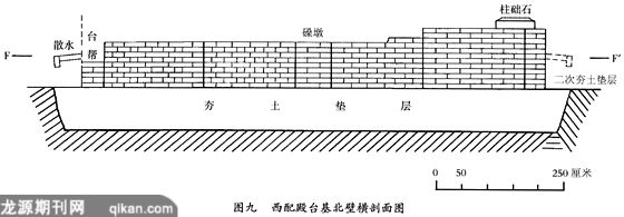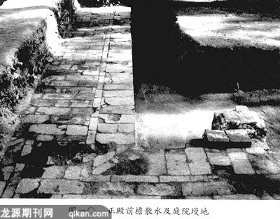 从庭院基址四周残留散水可看出,在垫层基础之上砌制好各台基后,围台基四周及庭院内又用三合土铺垫行夯,在此垫层之上铺砌散水和墁地(图一○)。