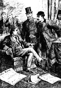 在审判前几个月开演的《理想丈夫》里面,罗伯特·切尔顿爵士模仿着佩特的口气说:“我告诉你,有一些可怕的诱惑,需要有力量,力量和勇气才能向它们屈服。把一生都押在一瞬间,把一切都赌在骰子的一掷上面,这其中没有软弱,有的只是惊人的、可怕的勇气。我就有那种勇气。”《严重有伤风化罪》这出戏主要是由庭审记录和其他有关审判的出版材料组成的。在戏里这几句台词和一个名叫伍德的少年的证词被作为对比同时朗诵。一天晚上王尔德趁老婆和孩子不在,带伍德到泰特街(Tite Street)的家里。“我们上楼来到卧室,在那里喝莱茵河白葡萄酒和塞尔托兹矿泉水②。随后最最有伤风化的事发生了。”在剧场里这一对比令人感到心灵的灼痛。其他演员都倒吸一口冷气。