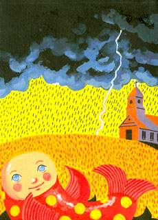 “让我猜猜,”我说。“他把它们种了起来,然后一根巨大的蔓藤长到了云里,在云层的上面是一座城堡,有一个巨人住在里面。”