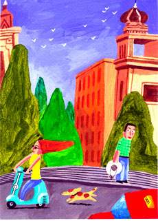 几秒钟后,他又赶上来了,这次不再从后面冲撞,而是肩并肩,两辆车占据了整幅路面,在山路和弯道上疾驰,彼时彼地的那种路面会让心脏不好的人心跳停顿。堂·普莱斯把自己的车挤我父亲的车道,我父亲再挤回去,两辆车的车门不断地相擦。我父亲知道自己只要愿意是可以在这种路上开的,但他不能确定堂·普莱斯是不是也能开,在两辆车前后追撞、摇晃颠簸的时候,他瞥见了堂的脸。这孩子肯定喝了酒。