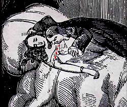 同样引人入胜的《她的儿子》(Her Son)面目就清楚许多,这说的是一个漂亮的寡妇结婚时没有收养她丈夫的儿子,后来却心生愧疚,一直在寻找那个私生子。人到中年,她越发因此耿耿于心,不能释怀,最后走向毁灭。错综复杂的情节通过一个若即若离的男性叙述人逐步展开。这种口技表演式的手法在亨利·詹姆斯的作品中很常见,华顿也常常毫不含糊地加以运用。(她显然觉得由男性来当叙述人更加保险:在这些短篇小说里,她极少冒险使用女性叙述人,尽管她在处理女性题材和女性观点时是信心十足的。)《她的儿子》是篇相当成功的小说,每一幕——包括最后也是最令人吃惊的意外——都是自然而然地水到渠成。《避难所》里的故事有些不切实际,情节虽然更加热闹,却透着一股子挖苦味。叙事技巧圆熟,有莫泊桑的风格,最后关于小刀的转折尤见功力。