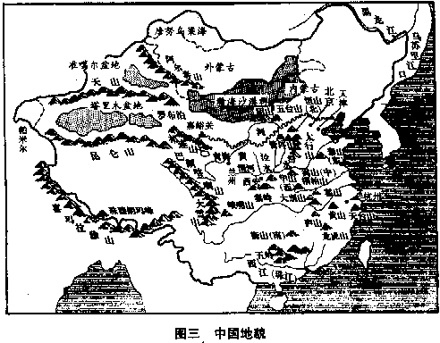 朝鲜半岛之北,是中国富庶的东北地区。朝鲜半岛之南,是长达一万四千公里,曲折而成为半圆弧形的中国海岸。北方海岸有两个小半岛——辽东半岛和山东半岛,像蟹螯一样箝住渤海的海湾。中部海岸向东方凸出,那正是海棠叶的叶柄所在。南方海岸向西前伸展,两颗珍珠岛屿,台湾岛和海南岛,清晰在目。 越过海岸,太空船正式进入中国上空,巨大的舞台呈现在眼底。四条悠长的大河,在巨大的舞台上,均匀地并排着,从西向东流。最北一条跟俄国交界的是黑龙江,次北一条成“几”字形的是黄河,偏南一条白浪滚滚的是长江,最南一条像手指汇到手掌一样的是珠江。 如果是二月天气,我们在太空船上会眺望到,最北的黑龙江千里冰封,那里的中国人还穿着皮衣皮靴,从口中吐出的热气会立刻在睫毛上凝结成冰;而最南的珠江这时却仍滔滔奔流,那里的中国人额上正淌着汗珠。两地人们如果交互旅行,仅只衣服穿着一项,便需要经过专家指导,一个人如果穿着单衣服从广州出发,当他在黑龙江畔的漠河县下飞机时,他可能立刻冻死,这说明这个舞台南北距离遥远的程度。 在渤海岸四处,一条黑线向西翻山越岭的蜿蜒伸展,那就是闻名世界的万里长城。长城以北是内外蒙古沙漠地区,这时仍一片隆冬景象、但长城之南却针锋相对的已大地春回,从万里长城到淮河这个一望无际的华北大平原上,全部覆盖着青青的小麦,像一座无涯的大海,城镇只不过是一群孤岛。温和的春风吹动时,原野掀起麦浪,翻腾澎湃,密接的村落在麦浪中飘浮,更像海上的点点渔舟。在南方,也就是在淮河以南,跨越长江,直到海南岛,全是一望无际的稻田,为了灌溉的缘故,那稻田被分割为一块一块,像无数宝镜在太阳光下反射出万道光芒。 这就是中国本部的景观,截至二十世纪初,六分之五的中国人居住在那里。 再续向西飞,距山东半岛约八百公里,太空船越过南北纵长的太行山,就看到地面突然隆起的山西高原。它的北方是瀚海沙漠群,静止时像一个死海,连秋虫的声音都听不见,一旦掀起风沙,人们的视线便全部模糊。山西高原不过是黄土高原的一部分,风沙怒吼时,它的威力仅次于真正的沙漠。黄土高原的居民大多数住在窑洞之中,窑洞的外貌很拙陋,但内部冬暖夏凉。 就在山西高原的中央城市太原,向南到洞庭湖,南北一线的上空,我们必须把手表投慢一小时,假如太空船是八时进入中国,那么在越过这一条线之后,时间却是七时。因为我们跨进格林威治时间的另一个地区,光阴正在回转。 不久,我们就可眺望到黄河之滨的一座古城——兰州,在它之北仍是向西延伸的瀚海沙漠群,在它之南是广大的四川盆地和云贵高原。华北大平原跟锦绣江南的广大绿色世界,逐渐消失。我们看到的是另一种景象,除了青葱的四川盆地外,其他地区的农作物的生长,都十分困难。北方瀚海沙漠群上的骆驼铃声是最有力的响声,南方云贵高原全是惊人的山岭和惊人的河谷,它地下丰富的矿产,到二十世纪,才显出它的重要。 中国第一大咸水湖青海湖,在太空船下滑过去,我们看到了万里长城尽头的嘉峪关,也看到像天上繁星一样的黄河发源地星宿海和潺弱一线的长江发源地沱沱河。就在它们上空,必须再把手表拨慢一小时,因为自上次拨慢了一小时后,我们又直线前进了一千五百公里。而就在同时,我们会吃惊地发现,地面更突然间峻拔上升。假如我们以四千米的高度进入中国而一直保持这个高度不变,那么此时太空船已经撞到地面,因为我们已到了平均四千五百米以上的青藏高原——也就是世界上最高的高原,被称为世界屋脊,太空船必须升高。 在青藏高原上看不到什么,它在二十世纪前,是中国最寂寞的地区,眼睛所及的全是终年覆雪的山头和寒冷贫瘠的砂砾丘陵,只偶尔有长毛的耗牛在山谷中载着货物,成一个伶仃的队形,踽踽前进。农作物因气候寒冷和土壤太坏的缘故,十分稀少,只有少量品质低劣的青裸;人口更是稀少,平均每平方公里还不到一个人。在世界屋脊之北,是陡然陷下去的巨大的塔里木盆地。再北则是天山。越过天山,又是一个陡然陷下去的盆地,即准噶尔盆地。这两个盆地上的稀少人口中——二十世纪初只有二百五十万,包括了博览会般的各种民族,是中国境内人种最复杂的地区;就在那沙漠跟巨山之间的千里草原上,不时兴起诗人形容的“天苍苍,野茫茫,风吹草低见牛羊”的动人场面。比起东部中国,这里显示的不是在方块稻田上生活的人们所能想像的气魄。 世界第一高峰珠穆朗玛峰和它所属的巨大山脉喜马拉雅山,都在我们眼下消失。太空船现在又前进了约一千五百公里,正位于塔里木盆地的中央上空,必须再把手表拨慢一次,把六时拨为五时。使人兴起一种青春倒流的惊奇和喜悦。 不断的时间变换,会扰乱正常的生活程序,这是疆土过于广袤的烦恼。从极东的乌苏里江口,到极西的帕米尔,时距相差四个小时。当乌苏里江口的渔夫在晨光曦微中泛舟捕鱼时,帕米尔的农人还在酣睡。一个人从乌苏里江口,于黎明时乘超光速飞行器向西飞航,他会发现天色越走越黑,当他完成五千公里的旅行,敲他住在帕米尔山下朋友的家门时,却正是午夜。世界上只有少数国家有这种奇特的景观,这少数国家是:俄国、中国、加拿大、美国、巴西、澳大利亚。