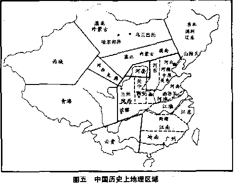 河西走廊,位于中国的中西部,北面是瀚海沙漠群西端的诸小沙漠和一连串较小的被称为“北山”的山系,南面是我们所介绍过的祁连山脉,也被称为“南山”。这个走廊从天山东端起,斜向东南,直到中国西部城市兰州,长达一千一百公里,但最窄狭的腰部宽度只一百公里。如同一条匹练,把一连串宝石——武威、张掖、酒泉、敦煌等大城,联缀在一起,是古中国通往西方诸国唯一的国际道路。第七第人世纪时,沃野相接,被形容为“塞外江南”。可是后来论人吐蕃王国和回纥汗国溃散后的零星部落之手,遂变成一个荒凉贫苦地带。直到二十世纪,交通道路和水利工程复建,这个残破的匹练才再度发出亮光。 西域,指现在的新疆和中亚的东部,以及克什米尔地区。但大多数情形下,只指新疆。阿尔泰山、天山、昆仑山,三条高入云霄的巨大山脉,成一个“三”字形,夹着两块巨大的准噶尔盆地和塔里木盆地。纪元前二世纪张骞进入这个陌生的世界时,仅塔里木盆地塔克拉玛干沙漠四周就有三十六个独立王国。七世纪一度被中国并入版图,设立一百多个州。但到了八世纪,却被吐蕃王国夺去。一千年之后的十八世纪,才再回到中国版图,命名为新疆,成为中国最大的一行政区域。 河套,即黄河“几”字地区。黄河穿过全国中心兰州后折向北流,流到阴山山脉之下,一连作两个九十度的剧烈转弯,好像天神抛的绳索恰恰套住鄂尔多斯高原跟它上面的鄂尔多斯沙漠。这一带应该是贫瘠的,但因黄河跟阴山之间有完备的灌溉系统,所以人烟稠密,农产丰富。一个古老的谚语说:“黄河百害,唯利一套。”二十世纪后,工业发达,使本区达到连梦都梦不到的繁荣。 塞北,塞,指要塞,万里长城当然是最大的要塞。所以“塞北”即指万里长城以北,也称“塞外”(历史上却没有“塞南”“塞内”的相对称谓)。广义的塞北包括“漠北”,即包括从万里长城直到贝加尔湖的内外蒙古全部地区。狭义的塞北则只到外蒙古边境,所以也称为“漠南”——瀚海沙漠群南部之意,也就是十七世纪之后的内蒙古中部的范围。本区跟中国本部虽只隔一线万里长城,但气候和地理环境以及人文反应,都大不相同。塞北比较寒冷,缺雨而多风沙,只有少数沙漠的间隙地带,才有辛苦开辟的农田和作为沙漠港口的城市。塞北是中国历史上产生外患最多的地区,除八世纪吐蕃王国和十九世纪之后西洋海上诸国外,中国百分之九十五以上的对外战争,都是抵御来自塞北的侵略。数不胜数的游牧民族,从塞北沙漠排山倒海般地涌出铁蹄,这跟罗马帝国的命运一样,但罗马人缺少中华人的数量和中华人所具有的弹性。 漠北,指瀚海沙漠群的北部,也就是狭义的塞北之北,包括外蒙古跟贝加尔湖,是北方游牧民族向中国发动侵略的根据地。哈尔和林就是匈奴汗国的王庭所在,回纥汗国曾修筑城垣,后来成为蒙古帝国早期的首都。中国对侵略者反击时,远征军必须作艰苦地深入,穿越瀚海沙漠群,才能打击到侵略者的心脏。如果仅只在塞北地区取得胜利,只不过是一种假象。远征军一旦撤退,游牧民族的力量就会立刻再度集结。这是中国所感受的最大的威胁。漠北跟中国合而为一时,中华人才有安全;跟中国分离时,中华人不能安枕。 东北,也称辽东、满洲。因位于万里长城起点山海关之北,所以也称关外,而称山海关以南的中国本部为关内。东北是中国最寒冷的地区,大兴安岭下的免渡河曾出现过使人失色的摄氏零下五十点零二度的气温。本区拥有两个大的水系跟两个大的平原,即松花江平原和辽河平原。土壤肥沃,仅把泥土运到关内,就是上等肥料。纪元前十二世纪时,松花江畔有一个肃慎部落,曾派人千里迢迢前来中国朝贡。以后在这个古部落故土上,出现过很多独立王国。朝鲜半岛上的高句丽王国,也曾侵占过辽东半岛。七世纪末期崛起的渤海王国,更一度成为东北地区的强权。后来成为女真人的根据地,先后建立了强大的金帝国和加倍强大的清帝国。二十世纪初,日本还在此制造一个傀儡政权满洲帝国。说明这个地区跟巴蜀地区一样,是一个完整的经济和军事单元,具有独立防御和独立进攻的能力。 云贵高原,包括云南和贵州二省,是由无数大山,无数急湍河流和无数险峻深谷所构成的广大高原。云南地区的山脉,大都由北向南的密密排列,像一道又一道的巨墙,紧夹着翻腾而下的咆哮河川。贵州地区则万山交错,难得看见稍大一点的平坦地面,有三句谚语可说明贵州在古中国微不足道的可怜地位:“天无三日晴,地无三里平,人无三两银。”云南的气候较为适宜,但交通之不便,比贵州的“地无三里平”更为严重,直线距离只一日的路程,因必须翻山涉谷的缘故,常要三日四日才能到达。如昆明距大理二百五十公里,步行要走十四日。大理距腾冲一百九十公里,步行要走十五日。这种困难的交通情况和阻塞的地势,是云贵高原重大的特征。另一个特征是人种复杂,贵州丛山是苗民族的根据地,其他地区则星棋罗布着傣人、水人、侗人、布依人、土家人、仡佬人等等。中华人对这些少数民族十分陌生,对被称为“瘴气”的空气污染,和各种蛮荒地区所有的传染病,又深怀恐惧,所以在十九世纪之前,一直把本区当作遍地都是毒虫的穴窟,坚信每一位漂亮的苗族女郎,都会一种神秘的“下蛊”邪术(没有人知道“蛊”是什么,据说可借饮食钻到肚子里,定时发作