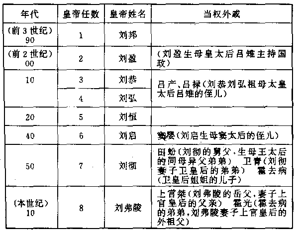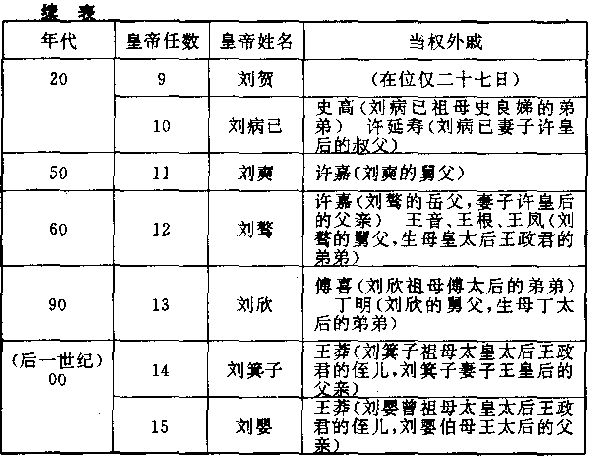 皇帝能力强的时候,外戚是一种助力;皇帝能力弱的时候,外戚就自然成为政权的接班人。吕姓外戚即是很明显的例证,假使他们中间有一个不是脓包,刘姓皇帝反击失败,西汉王朝的政权一定结束。所以在大的教训之后,一连两任皇帝,对外戚都保持相当距离。第七任皇帝刘彻,虽大量任用外戚,但他能够控制局势。而且还在防范工作上采取残忍手段。他死的前一年(纪元前八八年),最心爱的小儿子刘弗陵,只有九岁,他想立他当太子,于是先行把年轻美丽的母亲钩弋夫人杀掉,他解释说:“我死之后,她当了皇太后,一定为非作歹,重用她的家人。为了避免吕雉故事重演,不得不如此。” 然而,西汉政府的基本构成形态,所面临的不是特定的某一人某一姓的外戚问题,而是普遍性的外戚问题。吕姓戚族的屠灭和钩弋夫人的被杀,都无法阻挡政权滑入外戚之手。第十任皇帝刘病已出身平民(他的祖父是刘彻的太子,被杀,后裔废为平民)。刘病已当了皇帝后,不但有一种自卑感。而且有一种孤立感,他跟前任皇帝的外戚霍光站在一起时,就感觉到如芒刺在背。而在任用他自己的外戚掌握政权后,才感到安全。霍姓戚族终被屠杀,史姓戚族和许姓戚族接着兴起。 这种情形,演变到本世纪(前一)末期,遂形成一种现象:旧皇帝逝世时,他的外戚即退出政府;新皇帝即位,他的外戚即进入政府,好像近代民主国家选举后的政党转移情形一样。举一个例子就可明了,十二任皇帝刘骛逝世后,没有儿子,由弟弟的儿子刘欣继位。因为不是父子相袭,所以各有各的外戚,刘骛的母亲皇太后王政君,即下令王姓戚族全部免职,让出官位给刘欣的外戚——祖母傅、生母丁。 本世纪(前一)最后一年(前一),刘欣病死,也没有儿子,由他叔父的儿子,年方九岁的刘箕子继位。王政君恢复皇太后的权力,立即征召她的侄儿王莽担任大司马(宰相级),将傅姓成族和丁姓戚族全部杀掉或赶走,同时不惜采用流血手段,阻挡九岁刘箕子的外戚———母亲卫氏的家族,前来首都。 外戚政治发展到这个阶段,西汉王朝命运已经注定要结束。 纪元前九七年(司马迁所著《史记》,截止于本年),日本崇神天皇将象征皇权的神器(祭祀用具),安置于大和地方,日本人遂自称大和民族。 纪元前八五年(钩弋夫人被杀后三年),罗马共和国执政官美立阿斯,改革内政,取消穷人四分之三的欠债。剥夺远征小亚细亚大将萨拉公民权,屠杀他的同僚。 纪元前八三年(苏武回国前二年),萨拉由小亚细亚回军,攻陷罗马城。每日公布他的政敌名单,宣布不受法律保护,屠杀五千余人。 纪元前七九年(苏武回国后二年),意大利半岛维苏威火山爆发,庞培城沦没(当时是一件震人心腑的大惨剧,可是人们终于将此城和被活葬的人民忘记。两千年后的十九世纪,此城才被掘出重现,火山灰保护每一尸体,使两千年前人们逃难时的恐怖情景,如在眼前)。 纪元前七三年(中国使节傅介子击斩楼兰王后四年),罗马共和国奴隶斗士斯巴达卡斯等七十余人,从加菩阿角斗场逃出,各地奴隶纷往投奔,计划渡地中海脱离罗马。罗马大将格拉苏讨伐,战争持续三年,史学家称“奴隶战争”。 纪元前七一年(中国与乌孙王国夹攻匈奴),罗马共和国奴隶战争结束,奴隶军溃败,斯巴达卡斯跟他的部属六千余人,全部钉死十字架,自罗马城到阿匹安道上,悬尸数十公里。 纪元前六二年(中国在西域设总督前二年),罗马共和国“前三雄时代”开始,执政官庞培、格拉苏、恺撒,三人结盟,轮流主持国政。 纪元前五七年(匈奴汗国五单于并立),日本派遣使节到中国朝贡,中国政府颁发金印,印文“汉委奴国”。 纪元前五五年(郅支单于攻呼韩邪单于人王庭前一年),罗马大将偻撒攻入英格兰,说出名语:“我来,我见,我征服。” 纪元前五三年(南北匈奴向中国争宠,送太子为人质),罗马大将格拉苏,远征亚洲安息王国,在卡里会战,罗马军团大败,死二万余人,被俘为奴的一万余人。格拉苏被擒,安息人因他贪财如命,就把黄金熔汁,灌入他的口中而死。 纪元前四九年(南匈奴呼韩邪单于,首次入朝中国后二年),罗马“前三雄时代”结束。执政官庞培嫉妒恺撒的成功,与元老院联合,下令免除恺撒高卢(法国)总督。恺撒送回军,攻陷罗马城,庞培逃亡。元老院推选恺撒为执政官。 纪元前四四年(北匈奴汗国郅支单于杀中国使节谷吉),恺撒被其挚友布鲁特斯、加西阿斯,在元老院中刺死。恺撒部将安东尼发动民变,迎接恺撤养子屋大维到罗马城。 纪元前四三年(南匈奴呼韩邪单于,率众离河套,回归故地),屋大维、安东尼、雷比达斯,同被推选为执政官,史学家称“后三雄时代”。 纪元前三九年(中国远征军击斩郅支单于前三年),安东尼进攻埃及,被托勒密王国二十七岁女王克丽奥佩特拉所迷,流连忘返。 纪元前三一年(中国美女王昭君嫁呼韩邪单于后二年),安东尼与屋大维决裂,安东尼兵败自杀。克丽奥佩特拉打算再用她的美色迷惑屋大维,但不久就发现屋大维准备把她骗到罗马游街示众,遂自杀。从纪元前四世纪亚历山大帝国分裂出来的托勒密王国,到此灭亡。 纪元前三○年(关中大雨四十余日,长安大乱),罗马元老院上屋大维尊号“奥古斯都”(伟大),虽名义上不是皇帝,但既为终身元首,又世代相传,固与皇帝无异。罗马共和国选成为罗马帝国。 纪元前四年(皇太后王政君征召王莽当大司马前三年),耶稣诞生。 ------------------ 应天故事汇gsh.yzqz