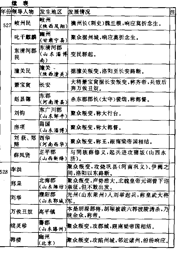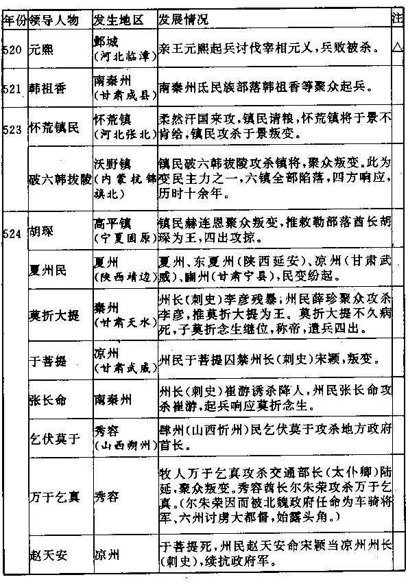 北魏帝国有一个野蛮传统,可能来自纪元前一世纪西汉王朝第七任皇帝刘彻的启示。刘彻将立他的儿子刘弗陵当太子时,先把刘弗陵的母亲钩弋夫人杀掉,预防她将来以皇太后的身份,干预政治。北魏帝国把这个偶然事件,明定为一种制度。所以在北魏宫廷中的惨剧,也比其他王朝为多。每当选立太子时,年轻母亲即被迫服毒,哭声响彻内外。一直到本世纪(六)初,第八任皇帝元恪立他的儿子元诩当太子时,元诩的母亲胡贵嫔本应处死,但元恪不忍心这样做。一百余年的野蛮习俗,才告废止。元恪于五一五年逝世,元诩即位,年才六岁,胡贵嫔顺理成章的当了皇太后,掌握政府大权。 年轻貌美的胡太后当权后的行为,对她丈夫元恪的善意立法,实是一种尖锐讽刺。这位一百年以来第一个出现的货真价实皇太后,却用事实证明那野蛮习俗确实有其存在必要。胡太后自从当权,除了大肆营建佛寺和佛像外,几乎全部精力都用在伤害帝国上。二十年代如火如荼的遍地抗暴,大多数由她激起,或由她触发。洛阳孤立在黄河南岸,已经进退失据,可是像蛆虫一样的政客们仍拥挤在权力魔杖的四周,斗争不休。五二十年,宰相元囗发动政变,把胡太后囚禁,但元囗比胡太后更为贪暴。五年后(五二五),胡太后反击,把元囗杀掉,重新掌握政权。她唯一的反省是再不能信靠外人,只能信靠她的两位情夫孙俨和徐纥。对各地民变,采取赢胡亥、王莽一样的政策,即用双手掩住自己的耳朵。凡入朝官员,胡太后向他们询问消息时,大家知道她想听什么,所以异口同声回答:“小股盗贼,不过一些社会败类,地方政府自会肃清,用不着圣虑。”胡太后在印证了她的观察正确后,就更肆无忌惮。五二八年,元诩的妃子生了一个女儿,胡太后宣称生了一个男孩,大赦天下,以示庆祝。元诩这一年已十九岁,觉得老娘势将把帝国带上毁灭,计划把她那两位炙手可热的情夫逐走。环顾左右,他选中了镇守晋阳(山西太原)的大将尔朱荣。这跟二世纪一八九年,东汉王朝宰相何进选中镇守河东(山西夏县)的大将董卓一样,历史开始重演。元诩命尔朱荣向洛阳进兵,用以胁迫他母亲胡太后。尔朱荣率军南下,到了上党(山西长治北),不知道什么缘故,元诩又命他停止。但消息仍然泄露,胡太后跟两位情夫遂把元诩毒死。 ——无限权力能把人变的禽兽不如。在权力斗争中,父亲杀儿子,儿了杀父亲,已不足为奇;而今竟出现母亲杀死亲生之子。而且是独生之子。 胡太后毒死亲生之子,不仅凶恶残忍,而且愚不可及,她挖掉自己生命的根。中国不像欧洲,在中国,妻子和女儿在法理上不能继承帝位。元诩死后,既然已经宣布过生了个男孩,男孩当然要继任为下届皇帝,可是胡太后知道无法隐瞒,只好马上再宣布,所谓皇子,本是皇女,而另立元诩的族侄,刚生下来才三个月的元钊当皇帝。这种重大的事件竟如此儿戏,胡大后把政治看的太简单了。尔朱荣首先发难,一面宣言要追查皇帝元诩的死因,一面不承认胡太后政府,另行拥立元诩的族叔元子攸当皇帝,向洛阳进攻。胡大后派出去迎击的军队反而投降尔朱荣,于是情夫逃走,洛阳陷落,胡太后和婴儿皇帝,被尔朱荣装入竹笼,投进黄河溺死。距她毒死亲生儿子,只两个月。 接着尔朱荣请政府全体官员到郊外迎接新皇帝元子攸,把文武百官诱到河阴淘渚(黄河洛阳间地名)之后,用骑兵团团围住,宣布罪状说:“国家所以衰乱,你们应负责任。”下令屠杀,在骑兵蹂践下,包括北魏帝国第一奇富的宰相元雍在内,两千余高门第世家的高级贵族和高级官员,全被杀死和踏死,政府为之一空。这是人民对腐败的当权官员的一种报复,也是庶姓对门第士大夫的一种报复,自然使人心大快,但也为社会带来恐怖,元子攸和残余的贵族士大夫,更如芒刺在背,认为必须把它拔除。这个火药库局面,维持两年,到了五三○年,元子攸把尔朱荣诱进皇宫杀掉。 元子攸杀尔朱荣之前,曾慎重考虑到尔朱荣强大的私人部队叛变的可能性。他研究二世纪九十年代的往事,当时东汉王朝宰相王允杀了董卓后,因拒绝大赦董卓的部将李囗、郭汜,才激起叛变。元子攸认为大赦和铁券(用铁铸成保证永享富贵并遇罪赦免的诏书),可使他不重蹈这个覆辙。 问题是,社会科学与自然科学不同,历史发展与化学方程式不同。同一刺激,因人、因时代和因环境的不同,反应也异。所以人们在觅取历史启示或教训时,必须特别小心。 尔朱荣噩耗传出后,尔朱荣的妻子斩关逃出洛阳,在城外集结尔朱家族散布各地的武装部队,开始攻城。他们对无子攸的大赦令嗤之以鼻,对送出来的铁券更是轻蔑,告诉使节说:“尔朱将军拥戴皇帝,有天大的功勋,都被谋害。两行铁字,又有什么用处?”洛阳不久陷落,元子攸被叛军绞死,距他杀尔朱荣仅三个月。 尔朱荣家族的一些将领,只不过一群暴徒,比河阴惨案被杀的那些官员,更为腐败贪虐。一个曾经追随杜洛周叛变,又投葛荣,后来投降尔朱荣,被尔朱家族任命当冀州(信都·河北冀州)州长(刺史)的高欢,看出尔朱家族的没落,就于元子攸被杀的明年(五三一),在信都起兵,声言讨伐叛逆。 明年(五三二),尔朱家族战败。高欢进入洛阳,立元子攸的族侄元修当皇帝。 高欢是汉人,但世居六镇之一的怀朔镇(内蒙古固阳),是一个典型的穷苦边民。六镇以鲜卑民族为主,元宏的汉化政策还不能影响到那么远,所以高欢在文化上彻头彻尾是一个鲜卑人,能说流利