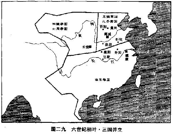 本世纪初,南朝南齐帝国亡于兵变。南梁帝国代之而起,又被内忧外患所迫,萎缩成为北朝的附庸。陈帝国又代之而起,割据局面遂到尾声。北朝北魏帝国在民变中凋谢,分裂为东西两个帝国。不久,东帝国被北齐篡夺,西帝国被北周篡夺。而北齐又被北局并吞,北周帝国接着又被它的皇亲国舅杨坚篡夺,改称隋帝国。 本世纪八十年代,隋帝国征服南朝,大分裂时代告终。中国又归于统一,而且是长期的统一。 南齐帝国皇帝萧宝卷于本世纪(六)第一年(五○○)激起他登极以来第三次兵变,大将崔景慧围攻台城(皇城),被另一位大将萧懿扑灭。可是萧宝卷不久又把萧懿杀掉,于是第四次兵变,也是最后一次兵变爆发。萧懿的弟弟雍州(湖北襄樊)州长(刺史)萧衍,在襄阳叛变,率军顺长江东下。萧衍在江陵(湖北江陵)另立萧宝卷十四岁的弟弟萧宝融当皇帝。但萧宝卷并不在意,他在皇宫中,用黄金铺地,凿成莲花,教他最宠爱的妃子潘玉奴走在上面,赞美说:“步步生莲花。”为支持此项步步莲花的黄金,国库为之枯竭。萧衍叛军于本世纪(六)第二年(五○一)十月,挺进到首都建康(江苏南京)城下,完成包围。萧宝卷镇静如昔,三次兵变都被扫平,他相信第四次兵变没有理由例外。所以他在围城中专心忙碌扩建他的宫殿,民间有一棵好树木或一株好竹,都被毁墙拆屋,移植入宫。他的左右亲信中有几个比较清醒的,看出局势严重,希望萧宝卷能安静下来。其中一人乘着萧宝卷坐骑忽然惊嘶的机会,向他进谏说:“我看见你父亲,他很不高兴,责备你总是出宫游荡。”萧宝卷大怒,拔出佩刀,寻找他老爹的鬼魂。既然寻找不到,就用草缚一个他老爹的人像,斩首,把头挂到宫门口,昭示全国。将领们请他拿出宫中财物犒军,萧宝卷跳起来喊:“为什么只教我花钱,敌人来了难道只杀我?”一个人被无限权力作弄到如此程度,使人叹息。到了十二月,萧宝卷正在殿上无忧无虑的作乐听歌时,城防司令官王珍国率军杀入皇宫,一个宦官一刀砍中他的膝盖。萧宝卷仆倒在地,另一位中级军官(中兵参军)张齐从旁再砍一刀,斩下这个只十九岁的年轻人的头颅,迎接萧衍入城。 明年(五○二),萧衍命萧宝融下诏禅让,南齐帝国只二十四年就告结束。萧宝融和萧姓皇族,当然不能逃过亡国失位君主的命运,像猪一样被屠净光。 萧衍的国号是南梁,他即位后不久就雄心勃勃,打算统一中国。南齐二十四年之间,跟北魏保持国际和平,边界无事,萧衍打破这个局面。 五○五年,萧衍命他的弟弟萧宏亲王当总司令,统军北伐。只不过四年前,萧宏还是南齐帝国一个平民庶姓的微不足道的低级职员(功曹史),可是他既当了亲王,权力就是能力了,他遂成为大兵团的最高指挥官,渡过淮河,进入敌境。但他心中却十分恐惧,推进了十数公里,到达洛口(安徽怀远),即不敢再进。明年(五○六),北魏反攻部队陆续集结,萧宏更加神魂不安,几次都要撤退,被一些将领苦苦留住。可是,一个暴风雨的晚上,营中发生夜惊,稍为熟习军旅生活的人都知道,夜惊是平常的事。萧宏却心胆俱裂,竟抛下他所统率的大军。秘密乘坐小艇逃走。等到天亮,将士们才发现失去元帅,全军立刻崩溃,抢先渡淮河南奔,互相争夺残杀,死伤五万余人,却连敌人的影子都没有看见。然而最奇异的是,萧宏高官贵爵如故。 萧衍不承认失败,九年后五一四年,他决心夺取寿阳(安徽寿县),寿阳是北魏帝国突入淮河南岸的一个军事重镇。萧衍命在寿阳下游一百三十公里处的浮山(安徽五河)附近,建立横断水坝。计划水坝筑成后,淮河上游水位提高,寿阳即被淹没。这个方法很好,但问题在于那个水坝,它必须能够承受水库的压力。工程部门官员提出警告说,淮河的河床,尽是泥沙,飘忽流动,水坝基础,必不可能稳固。但萧衍坚持自己的见解,于是开始施工。动员二十余万人,从淮河南北两岸。分别兴筑,向中流合拢。五一四年十一月开工,五一五年四月完成。想不到刚刚完成,水库的水只积蓄一点点,水坝即行崩溃。幸亏春雪还没有融解,损失不大。可是,萧衍不接受这个教训,下令重建,从五一五年四月,到五一六年四月,历时一年零一个月,第二次完成,长约四公里半。这是一个惊人的长度,即令在一千五百年之后的二十世纪,也是世界上最长的水坝之一。 最初,北魏帝国对这个水坝十分恐慌,准备出兵攻击筑坝工人。但宰相李平了解水性,认为水坝绝承受不住水库的压力,不必出兵,它会自然解决。所以北魏连寿阳居民都没有疏散,倒是萧衍却忙碌起来,在寿阳附近山头,安排灾民收容所,准备寿阳陆沉时收容逃出来的灾民。水坝完成后五个月,九月份来临,淮河水位暴涨,水库盈满。于是,天崩地裂般一声巨响,远在一百五十公里以外都听得见,水坝第二次崩溃。建立在坝上的军营和沿淮河下游两岸的村落,总共十余万人,包括将士和睡梦中的妇女儿童,为了萧衍一个人愚昧的一意孤行,全被洪水卷走,葬身东海。 历史上很少创业的君主,像萧衍这样的颟顸。 北魏帝国自上世纪(五)九十年代迁都之后三十年间,是帝国的鼎盛时期。北魏在文化上最大的贡献书法和浮雕,都集中在这三十年间完成。中国碑帖中,“魏碑”最为著名,就是因为它的书法有不同凡响之处,北魏流行一种肥胖型书法,但骨骼均匀,肌肉结实,使方块的汉字充分表现出它的华贵美。至于浮雕,是佛教最兴盛时的产品。佛教在本世纪(六)达到以前从未有过的巅峰