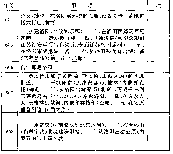 本世纪初叶,刚恢复统一的中国,又发生混战,使全国三分之二以上人口死于刀锋和饥饿。这场大混战,来自暴君杨广,他是隋王朝第二任皇帝,具有绝顶的聪明和精力,所以只短短的十数年工夫,就把自己的王朝消灭。 代之而兴的是唐王朝,在一片瓦砾中,收拾残灰余烬,上下一心,兢兢业业,迅速走向繁荣,使中国历史进入第二个黄金时代。 这次黄金时代约一百三十年,其中并不是全无风暴,犹如混战时代并不是全无和平一样。本世纪末叶,出现了一位女性皇帝武(上明下空)。她当过姬妾,当过尼姑,但传奇般的机会和她敏捷的政治才能,使她竟然夺到政权,建立她自己的周王朝(史称南周)。 隋王朝开国皇帝杨坚使分裂的中国归于统一,是他最大的荣耀。他虽然有很多缺点,但他很俭朴,很知道珍惜国力,使中国很快地就恢复应有的强大。但他的妻子独孤皇后却是一个具有奇异癖好的女人,不但自己吃醋,也为别的女人吃醋。他们夫妇共生了五个儿子,其中跟我们有关的是长子杨勇和次子杨广。杨坚曾说:“从前帝王,小老婆太多,儿子们不同母亲,所以往往分党相争。不像我的五个儿子,一母同胞,亲如手足。” 可是,世界上有两种东西能摧毁人性和人伦,那就是权力和金钱。就在隋王朝统一中国后不久,担任攻陈总司令的杨广开始夺嫡,向他的同胞哥哥皇太子杨勇伸出毒手。杨勇是一个大而化之的花花公子,疏阔豪爽,不注意小节。老娘独孤皇后最讨厌男人讨小老婆,杨勇偏偏有很多小老婆,以致妻子郁郁而死。老爹杨坚最讨厌大臣花天酒地,杨勇偏偏喜欢音乐歌舞,饮宴达旦。这些本都是小的缝隙,但已够杨广有计划地楔入。杨广只有妻子萧妃一个人,仅此一点就使娘亲高兴。老夫妇有一次到杨广家,发现婢仆们都老而且丑,乐器上布满灰尘,甚至连弦都没有,不由大喜。老夫妇每派人到儿子们那里,杨勇只把他们当仆人看待,杨广却不然,他和妻子一定双双站到门口,亲自迎接,致送厚礼,于是老夫妻耳畔听到的全是赞扬杨广的声音。杨广出镇江都(江苏扬州),每次入朝辞行时,都痛哭流涕,依依不舍,父母见儿子如此孝心,也流下眼泪,不忍他远离膝下。杨广知识程度很高,有很好的文学素养,对任何人都很诚恳,谦虚有礼,尤其曲意交结政府重要官员,包括杨坚最信任的宰相(尚书左仆射)杨素。他所展示出来的,全是一个千载难逢的标准领袖,具有肝胆相照、义薄云天的英雄性格和救国救民、民胞物与的圣贤抱负。节俭、朴实、谦恭、虚怀若谷、好学不倦、礼贤下士、不爱声色犬马。一一集人类美德于一身。 一切布置成熟后,本世纪(七)的第一年(六○○),“诬以谋反”的法宝罩到杨勇头上,杨坚下令把杨勇贬为平民,囚禁深宫。改立杨广当皇太子,杨广夺嫡成功,全盘胜利。 本世纪(七)第三年(六○二),杨广的娘亲独狐皇后逝世。第五年(六○四),悲剧降临到后死的父亲头上。这一年,杨坚前往长安西北一百二十公里外的仁寿宫(陕西麟游)避暑,病情沉重,杨广入宫侍奉。他内心的兴奋使他无法再继续控制自己,不久就对老爹最宠爱的陈夫人,垂涎三尺。一天,乘着陈夫人上厕所的时候,上前一把抱住。陈夫人挣扎逃掉,杨坚看她神色仓惶,问她怎么回事,她垂泪说:“太子无礼。”杨坚大怒说:“独孤误我!”命他的两位亲信官员去长安召唤杨勇。杨广得到消息,急急通知杨素,杨素立即把两位亲信官员逮捕,勒兵戒严,包围仁寿宫,断绝内外交通。杨广的部属张衡(他后来被杨广杀掉灭口),闯进杨坚卧室,把老爹抱起来,猛击他的胸部。杨坚口吐鲜血,哀号的声音,传入后宫,后宫陈夫人以下全体宫女,屏声静息,面无人色。 杨广弑父后的第一件事就是找他的美丽庶母陈夫人上床,第二件事就是派人驰赴长安把他那已经被罢黜的哥哥杨勇杀掉。杨广从开始采取夺嫡行动,到他行凶之日,历时十四年,在这段漫长岁月中,一直保持伪装,真是一件不容易的事。而杨广竟做得天衣无缝,可说明他具有绝顶的聪明才能。可惜他欠缺人类所特有的高级灵魂和情操,他夺嫡的目的只有一个,就是获得无限权力。获得无限权力的目的也只有一个,就是发泄他的大头症。 大头症是一句民间俗语,形容一个极端自私的人所发作的肤浅而强烈的炫耀狂。杨广如愿以偿的当了皇帝之后,被压制十四年之久的兽性,像火山一样,以雷霆万钧之力,向外爆发,最后除了一根绞绳外,任何东西都阻挡不住。他在位十五年,大头症也历时十五年。为了叙述方便,我们将这十五年中他的重要作为,列一年表: