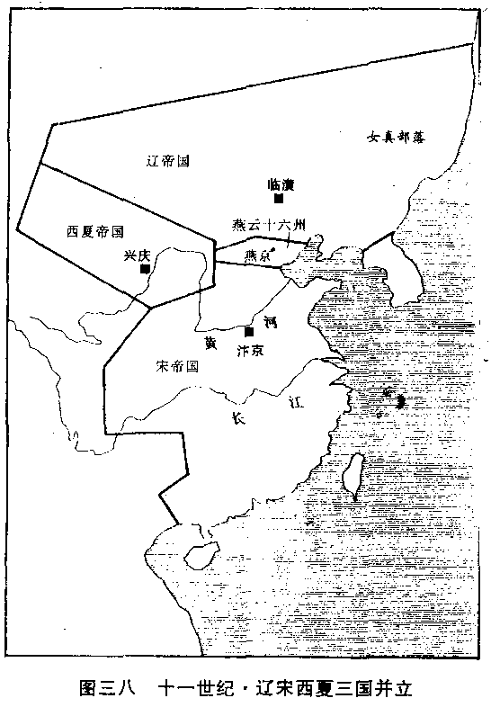 宋辽对抗在本世纪○○年代和解,两国之间保持一百余年的长期和平。但宋帝国由于本身太衰弱的缘故,西北一隅的夏州(陕西靖边北),跟西南一隅的交州(越南河内)一样,也脱幅而去,建立西夏帝国。这个帝国既小又穷,可是,对宋帝国的伤害,却十倍于辽。 在中国固有的领土上,事实上不是宋帝国大一统的单独局面,而是三国分立局面。这个局面,一直延续到第十三世纪。 宋辽两国的冲突,到了本世纪(十一)初叶,急转直下。 一○○四年,辽帝国大举南征,皇帝耶律隆绪和他的母亲萧太后亲自统军,进入宋帝国本土之后,只使用少数军队攻击城市,主力却穿过原野,直赴黄河。深入四百公里,进抵澶洲(河南濮阳),距宋帝国首都开封(河南开封),直线只一百二十公里。宋帝国朝野震动,皇帝赵恒召集紧急会议,群臣们除了想到迁都外,别无他法。大臣王钦若是临江(江西樟树)人,他主张迁都异州(江苏南京);另一位大臣陈尧叟是阆州(四川阆中)人,他主张迁都成都(四川成都)。只有宰相寇准反对,他主张御驾亲征。他说“御驾亲征,对士气是一个极大的鼓励,可以致胜有余。何况敌人深入,我们坚壁清野,用奇兵切断它的粮道、它只有败退。一旦迁都,人心崩溃,帝国可能瓦解。” 赵恒采纳了寇准的意见,即行北上,进驻遭州(河南濮阳),登北门城楼,跟城外的契丹兵团对峙。这是大决战的前奏,但和解却早已暗中进行。被辽帝国于前一年俘掳的宋帝国大将王继忠,深得耶律隆绪的礼遇。他乘机分析和解的利益与对抗的恶果,建议两国举行谈判,萧太后和耶律隆绪被他说服。于是由王继忠写信给赵恒,透露辽帝国的弹性态度,赵恒遂派遣代表曹利用前往辽军司令部磋商。 当赵恒到达澶州之后,曹利用也从辽军司令部返回澶州。辽帝国坚持要索回上世纪(十)九五九年被后周帝国夺取的瓦桥关(河北雄县)以南的“关南地区”,包括莫州(河北任丘)、瀛州(河北河间)。赵恒不肯接受,他希望的是没有损失的和平。但是辽帝国后卫部队已对莫、瀛二州开始猛烈攻击,危在旦夕,如果陷落,辽帝国的条件势必更苛。于是赵恒表示,关南地区不可以割让,但宋帝国愿每年向辽帝国进贡,作为补偿,派遣曹利用再往谈判。萧太后、耶律隆绪正占优势的时候,当然不肯让步,但曹利用提醒他们母子:“和解不成,只有战争。中国现在是一个统一的帝国,不像分裂状态下的后晋政府。我们皇帝又亲自督战,士气激昂,你们未必一定胜利。而且未帝国进贡,是把整批财宝直接送到陛下手中,而战争掠夺,只便宜了将士。”这些话正确地分析了事态的真相,结果议定宋帝国每年向辽帝国进贡银币十万两,绸缎二十四万匹。两国代表对天盟誓,签订和约,这就是有名的“澶渊之盟”。 上世纪(十)之前的货币,还是以钢铁铸造的“钱”为主,以一千个钱为一“缗”(贯、串),缗是最高的计算单位。本世纪(十一)两个条约所载,白银已成为主要货币,“两”已成为最高计算单位。这种改变,一直使用九○○年。到二十世纪初叶,才再改为以“元”为最高计算单位。 宋帝国向辽帝国进贡,显然大失面子。但是,两国对抗,最好能把敌人消灭;如果不能,那么就只有忍气吞声跟它做朋友。长期的缠斗不休,再强大的国家都会因精疲力尽而瓦解。以当时形势,和解实是最明智的决策。这是一次长时间的和解。从○○年代一○○四年起,到下世纪(十二)—一二二年为止,凡一百一十九年。自八世纪中叶安史兵变,使沉沦在混战中二百余年的黄河以北大平原上的中国人民,初次得到安定。 一一九年长期和平中,并不是没有争执。争执经常发生,但都由谈判解决。最大的一次争执发生于四十年后的四十年代一○四二年,辽帝国再度提出关南地区的要求。那时宋帝国正被新独立的西夏帝国连连击败,结果增加每年进贡数量,共银币二十万两,绸缎三十万匹。 任何新兴的政权,初起的时候,都会有一段时间具有相当强大战斗力。只宋帝国不然,它一开始就高度疲惫。同样是中国人,在唐王朝黄金时代,生龙活虎使山河动摇。可是一进入宋王朝,却成了病夫,不堪一击。 赵匡胤是后周皇帝郭荣的亲信,被认为绝对不会叛变的将领,然而他终于叛变。他自己的故事使他警觉到部下的所谓忠心,并不可靠。要想根绝叛变,不能单纯的寄托在部下的忠心上,唯一的办法是不要为别人累积叛变的资本。所以他定下原则:不让大臣有权,万不得已时,也不让大臣有权过久。假如有权的人所掌握的权都只是暂时性的,就无法作大规模行动。这可从下列的宋王朝中央政府组织形态上,观察出来: