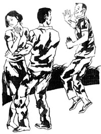“休想!”刘钢大喝一声,便赤手空拳与歹徒搏斗起来。张杰赶忙拿手机打110报警。就在刘钢与其他三个歹徒搏斗时,那个手刺骷髅的家伙一刀砍在刘钢的左脸腮上,鲜血顿时溅到身上。但他仍顽强地与歹徒搏杀,终因寡不敌众,被歹徒砍倒在血泊中。恰在这时,警察赶来,将歹徒抓获,张杰忙把血人似的刘钢送进医院。