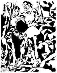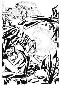 “我们吃完了鱼,再摸到那边去舔一块山岩,那儿的山岩有点咸……这里面的人想吃就吃,想睡就睡,没别的事。当然,他们也生儿育女,小孩生下来就没有眼睛……噢,他们分两个部落,湖这边一个部落,湖那边一个部落。同一个部落的男女,无论怎样都不会发生关系。孩子生下来,由妈妈和舅舅带,不知道父亲是谁……当然,他们也没有家庭,没有私有财产,此间的人没有私心,一根肚肠到底,很好相处的。只是他们讲话都用文言,不大好懂……”小皓迫不及待地介绍起这个神秘的世界来。