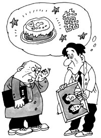 ⊙营养学家:“有一种食物最危险,人们食用后会引起痛苦、悲伤和疾病,不幸的是,许多人仍在继续食用。谁知道这种危险的食物是什么?”某君答:“结婚蛋糕”。