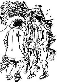 谢春娥正和黄双林谈着,忽然远处出现一个影子,随着影子传来的是不断重复的几句歌声,黄双林听出这是他家乡人熟悉的民谣: