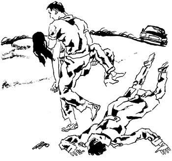 秦勇当然不会让老七和白柳眼睁睁地在他眼皮子底下逃跑。他在学校是个格斗冠军,身手不凡。他多次孤身深入犯罪集团,同凶残的亡命之徒进行格斗。眼前的犯罪分子虽有白柳,还有老七和水路上来的汉子,他可以对付。而老七也早已产生了恶念,随着一声喊:“秦队长,对不起喽!”一道寒光直刺秦勇脑袋上的太阳穴。