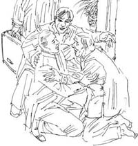 院中二人的对话,早已惊动了屋中的老母张二环。闻听死于朝鲜战场上的儿子回来了,心想这怎么可能?可外面的对话真真切切!她连鞋子也没顾得上穿,跌跌撞撞地奔出了屋外。一见面目全非的老母亲,张府城飞步上前,大叫一声“妈妈”便跪在了地上:“妈妈,我是您的儿子张府城啊!我没有死……”
