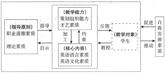 小学英语教师所应具备的各方面素质并不是孤立存在的,它们构成了小学英语教师素质的完整系统。在这个体系内部,各方面素质相互联系,形成了一个素质系统,从而使得教学活动得以顺利开展。下图展示了这个系统内部素质之间的主要联系: