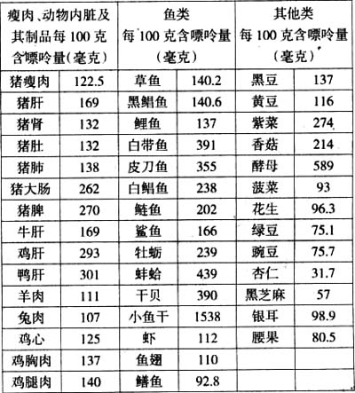 1.低嘌呤饮食。动物内脏、骨髓、沙丁鱼、凤尾鱼、蚝、蛤、蟹、浓肉汤等为高嘌呤食物,可诱发痛风急性发作,应禁吃;一些蔬菜也含有较高的嘌呤,如韭菜、菜花、黄豆芽、豌豆苗、菠菜、扁豆、紫菜、菌类等,最好不吃或少吃。牛奶、鸡蛋、水果、植物油、蔬菜应首选。下表中列出一些常见的含中、高嘌呤食物,供读者参考。