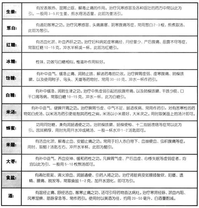 药引子是有些中药处方中不可忽略的组成部分。中医处方是以“君、臣、佐、使”的原则来作药物配伍的,药引子就是“使药”。它主要起引药归经,增强疗效的作用,有时还能缓和药性、保护脾胃、解毒以及矫正味道,与中药和中成药适当配合,可收到相得益彰的疗效。现介绍几种常见的药引: