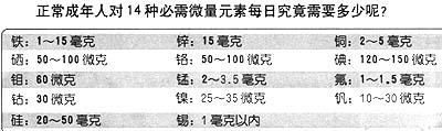 正常成年人对14种必需微量元素每日究竟需要多少呢?
