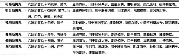 多年来,人们在六味地黄丸的基础上添加其他中药组成了各种地黄丸。目前,收入“中国药典”的除六味地黄丸外,还有: