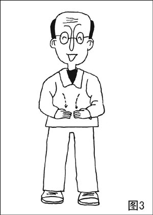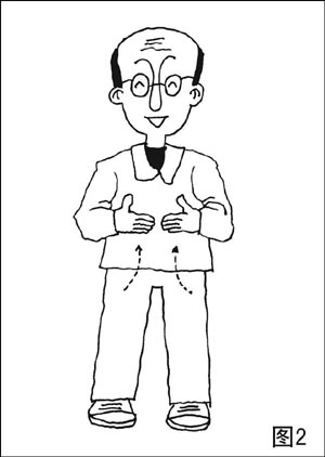 直立时,手指相对,掌心向里,眼睛平视(图2)。