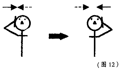 3. 颈部左右侧方运动右手于耳上方抵住头的右侧方,抵抗头的右侧方倾倒;换左手抵抗头的左侧方倾倒。交替进行多次(图12)。