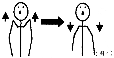 1. 肩的上下运动两肩放松下垂,双肩上耸,吐气的同时用力沉肩(图4)。