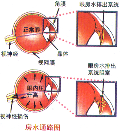 眼内的液体称为房水,其在眼内有一定生成、排出和循环的通道,以维持眼内正常的压力,一般在20~24毫米汞柱左右。