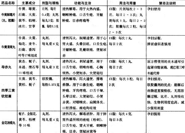 如今,清热祛火药品种甚多,下面列表介绍几种最常用的,以供患者参考。需要时最好在医生指导下服用(编者注:下表中的用量都是成人用量,小儿当酌情减量)。