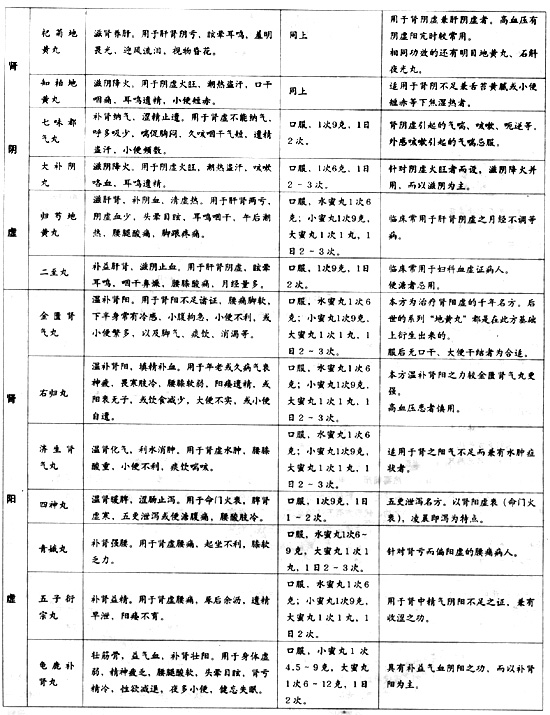 肾虚,当然要补肾,除了饮食调理或药膳滋补外,最主要也最常用的方法是用补肾中成药。服药关键是掌握其适应证,细辨证候才有针对性。如肾阴不足,则要补益肾阴,常用六味地黄丸;但如果症状未变,且舌苔黄腻,则不再适用六味地黄丸,而应改服知柏地黄丸;如肾虚兼有两眼昏花、视物不明或眼睛干涩,则应服杞菊地黄丸,如此等等。此外,不能一味地只辨证,仍须明确西医病名的诊断,尤其是掌握疾病的演变和预后,这样两条腿走路,才会收到预期的效果。