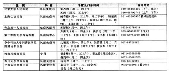 为了指导患者正确就医,现将我国部分风湿病专科介绍如下: