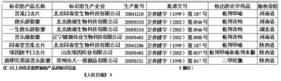 此前,卫生部对部分调节血糖类保健食品添加化学药品情况进行监督抽检,发现7种产品含有格列甲嗪等化学药品。为保障消费者身体健康,卫生部要求各地加强对保健食品生产经营活动的卫生许可和监督检查工作,依法查处违法生产经营行为,并及时向社会通报。