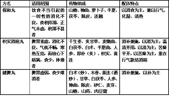 方中山楂、神曲、萝卜子(莱菔子),助消化,能消各种饮食积滞。其中,山楂善于消肉食油腻之积滞,且用量最大,为方中主要药物;神曲是经发酵而成,更善于化谷麦酒食陈腐之积滞;萝卜子能消食下气,消胀除满,偏于消谷面之积滞。三药合用,可消一切饮食积滞。