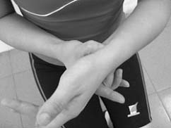 将一手中指和拇指分别放在另一手的外关穴和内关穴上,2指对合用力按压0.5~1分钟。双手交替进行。
