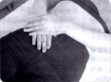 平卧床上,双目微闭,呼吸调匀,左手掌重叠于右手背上,将右手掌心轻轻放在下腹部,静卧1~3分钟。