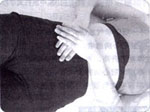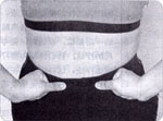 两手叉腰,将拇指按在同侧肾俞穴,其余四指附在腰部,适当用力揉按0.5~1分钟。