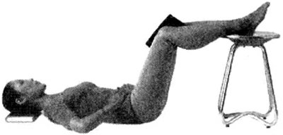 1.仰卧,双腿置于箱子或凳子上弯曲,与臀部成90度。在大腿之间放一个小而平的垫子或者折叠的毛巾,使骨盆保持平行。双手放在小腹上,正确吸气(如下图所示)。