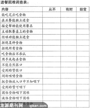 老年痴呆患者的营养护理,必须强调有针对性,个体化搭配,这就需要对患者进餐情况进行调查评价(见右表)。
