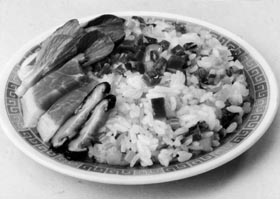 特点:此饭腊香醉人,饭软肉酥,油而不腻,吃来滋润鲜美,自有迷人佳韵。