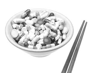 另外,补铁剂不要与麦片、鸡蛋、牛奶或奶制品同服,因为其中的某些成份可与铁盐形成不能吸收的化合物,从而影响铁的吸收;苯妥因钠不要与含大量谷氨酸单钠(味精)的食物同服,因为本药可加速谷氨酸单钠(味精)的吸收,而引起毒性作用,出现乏力、颈后麻木感及心悸;抗凝药不要与柠檬汁、蛋黄、鱼或鱼油、土豆片或菜油同服,这些食物可减弱抗凝血药效果,延长凝血时间;强心甙不要与奶制品或含大量钙质的食物同服,它们可减弱药物作用,引起心律失常;奎尼丁不要与抗酸剂或碱性食物同服,碱性作用可妨碍奎尼丁排泄;醋氨酚不要与碳水化合物如饼干、枣、果冻同服,因为它们可形成复合物而延迟药物的吸收(但不影响药物吸收的量);双醋苯啶不要与牛奶或碱性食物同服,它们可使胃肠内PH值升高,导致药片的包膜分解;戒酒醇不要与含乙醇的食物同服,否则可引起醉酒样症状,如视力模糊、胸痛、呼吸困难、眩晕、面色潮红、头颈部脉搏加剧、恶心、呕吐、乏力。