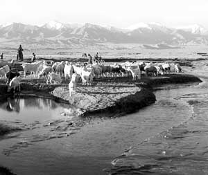 话音刚落,主人的酒壶轻轻一倾,一道瀑弧飞入酒碗,随着一串悦耳的注水声,我的面前又是满而不溢的一碗奶酒。主人一边邀我吃热菜,一边介绍他自酿的奶酒。