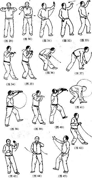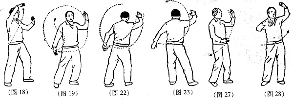 作用:松弛腿、臂、腰、腹等部位肌肉群,削减皮下肥厚的脂肪,可防治肥胖引起的老年性半身不遂和糖尿病。双肩双肘相对运转,可扩展胸围,对防治肺病、气管炎和促进体形健美均有妙效。上下头颈伸缩,可调节大脑中枢神经,有益于防治脑血管疾病。(待续)