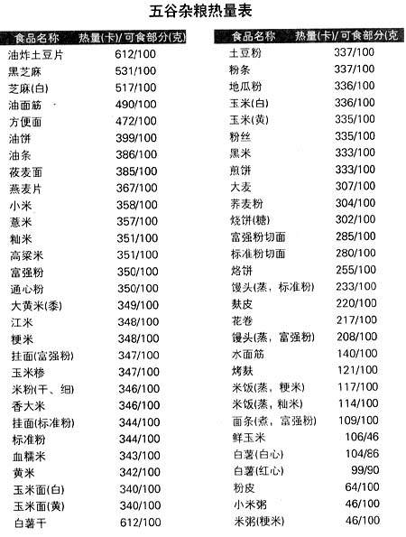 为了便于肥胖者和糖尿病人控制热量的摄入,可参考下表,把握好自己的饮食原则。
