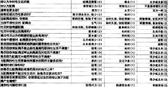 问题3~6:关于性反应——当双方在提出性要求方面平等自由时,两人的性生活往往很愉快,而当你想性交而伴侣不想时,你也不会感到生气或难受,这时决定你性生活次数的将是兴趣而不是义务。