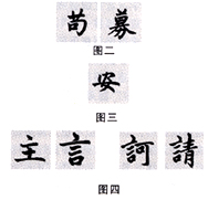 其次要注意字头的变化。有变化,不致刻板。即使是对称结构的字头,左右两边也不应该写得完全一致,如影象一般。赵孟在这方面是做得比较突出的。例如,图一所列的“四字头”,“罗”上面字头为“四”,“置”上面字头为“曰”,而雨字头中四点,几成连笔,这主要是赵体楷书掺杂有行书笔法的缘故。再如草字头,除上面所列两字外,“苟”、“募”(见图二)两字中,草字头又发生了一些变化,前者将左右两短横画连写,后者则是草字头横画的弱化而反衬出两竖(即两点)的强化。他如宝盖头,“空”字的字头与下部分隔得很清楚,而“安”字(见图三)的宝盖头上起笔之“点”已与下部“女”字连写,笔顺也发生了变化(其他书家写此字也往往以此笔顺连写)。