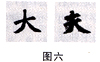 同一字形,例如“人”字,在不同位置,写法有异。如作字头(见图一),撇捺之夹角务必等于或大于90°角;而作字底(见图六)时,撇捺之夹角又必小于90°角。这是因为从结构上来说,作字头要作包覆之状,好象农村早年的草垛,最上面的草层侧视夹角较大,可以允许下面的堆草有尽可能多的增量而且能护卫得充分;而作字底时,应取稳载之势,恰如举重运动员,不管他的腿肌如何健壮发达,如果两脚叉开,是一定无法将大重量举起、举稳的。