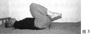 6、接做两脚跟击打臀部(图5),3次后两腿仍然向上绷直。
