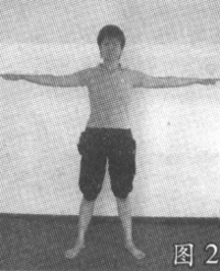 吸气,两臂侧平举,手臂与地面平行(图2)。